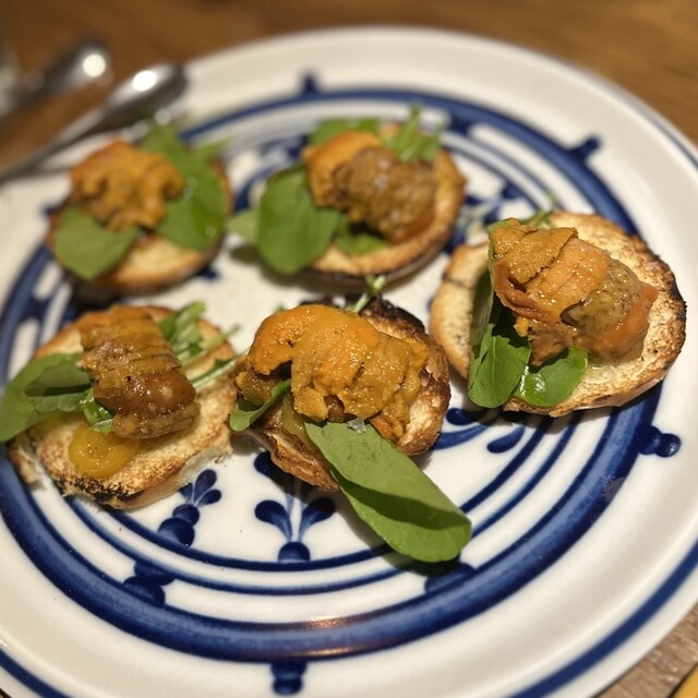 ウニのブルスケッタ、熔けたよ。