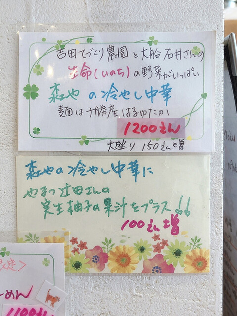 現在の限定は引き続き「森やの冷やし中華」「しそ塩トマトらーめん」もあり、これらもオリジナリティありとても美味しいです。