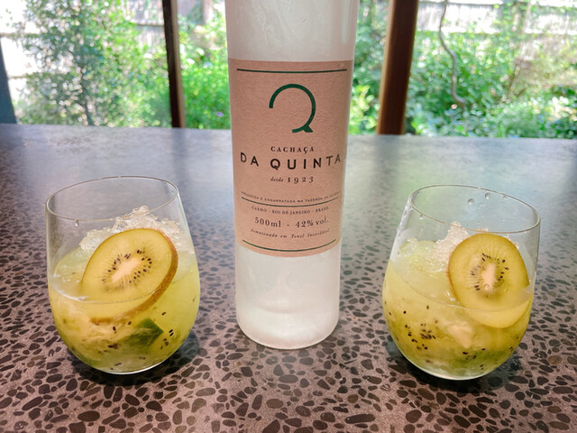 カサーシャと言うブラジルのサトウキビ原料の42度の蒸留酒。細かくしたキウイをグラスの中で潰して砂糖・氷とカサーシャを入れていました。キウイのカイピリーニャと言うカクテルなのですね。