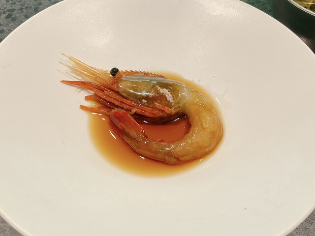 牡丹海老の紹興酒漬け。海老の甘みと紹興酒のコクがとても美味しい。沢山頂きたくなります。