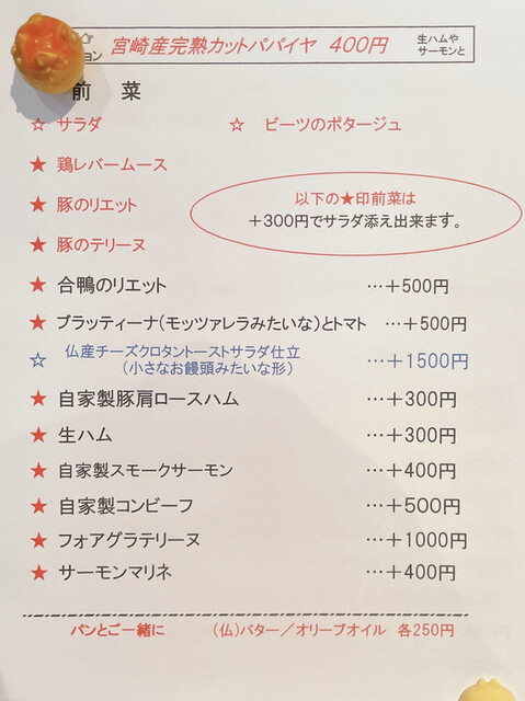 鎌倉野菜を堪能するには前菜にサラダを選択をするか、又は一部の前菜にプラス300円でサラダ添えにします。