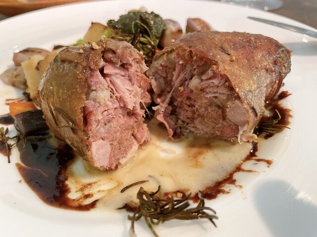 豚のテリーヌをいただくと香草とスパイスの香りが鼻から抜けていきます。