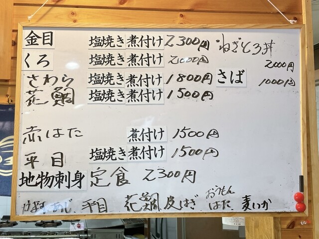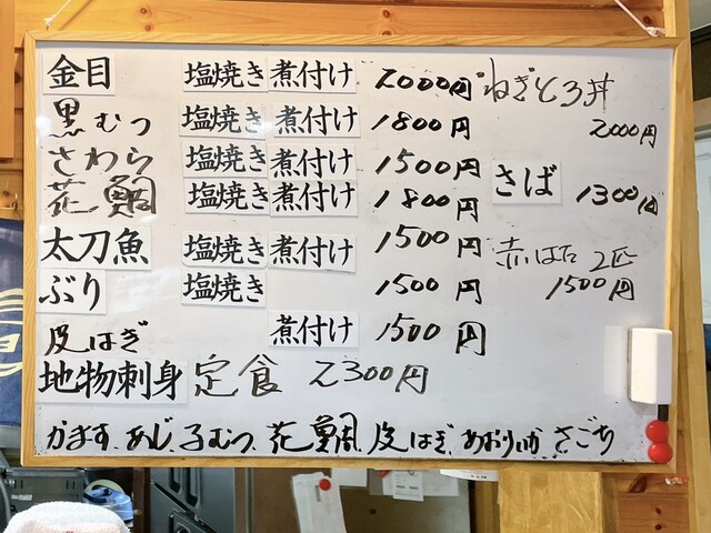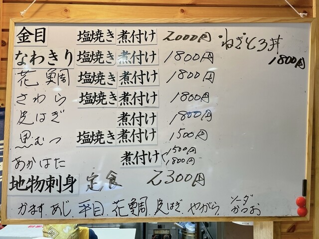 ホワイトボードに本日のメニューがあり、やはりおすすめは刺身だそうです。