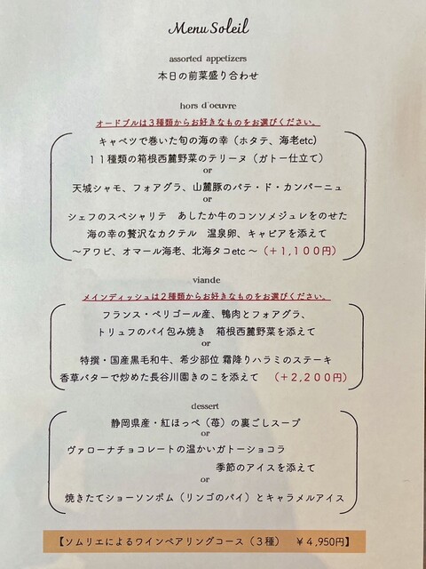 ◉Menu Soleil 6,000円x4