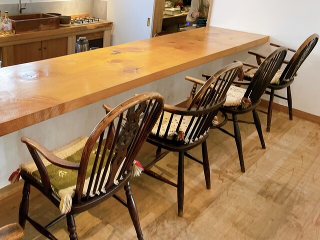 店内はオープンなカウンター席のみで、英国製のアンティークな椅子が並んでいます。