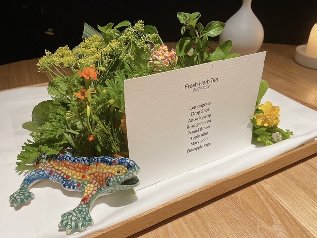 同じ素材を分解してそれぞれ手を加え再構築したり、発酵させた食材を活用したもの、薪などの香りを加える、様々な出汁による味わいを加えていたりという感じです。
