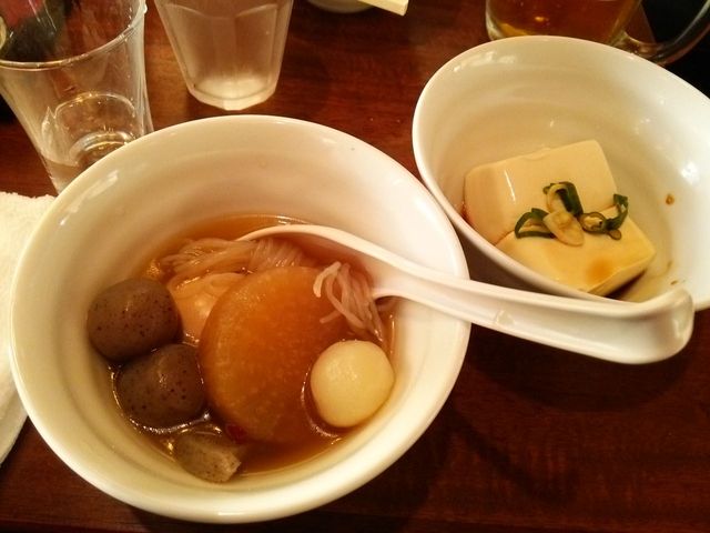 おでんに冷や奴、キムチなど。一品のおつまみメニュー。ありがとうございました。