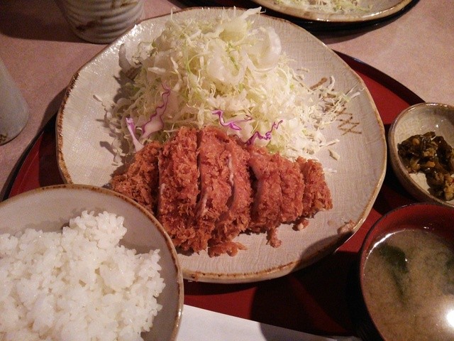 そんなわけで、繁盛されていたわけなんですが。忙しいんですかね。すっかり私の存在を忘れられたようで、私の後から入店した人が食べ終わった頃に、私のとんかつが来ました。
