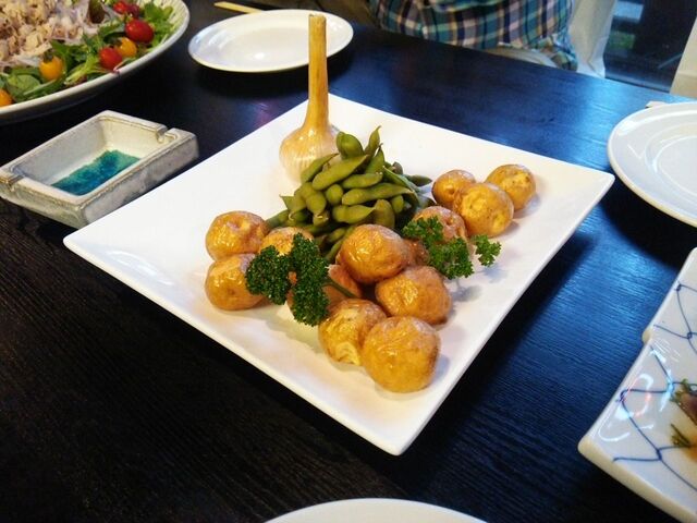 たこ焼き風コロッケ。これ、面白い。里芋がベースなんだけど、中はたこ焼きで、しっかり蛸も入ってる。