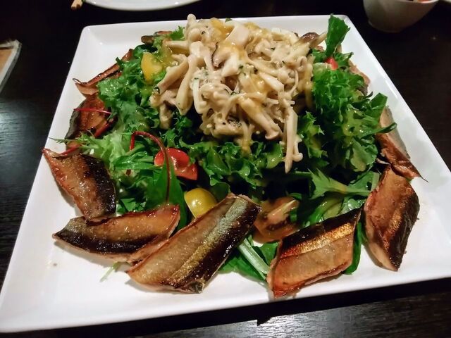 スモーク秋刀魚柿ソースサラダは、スモークされた秋刀魚がいい。