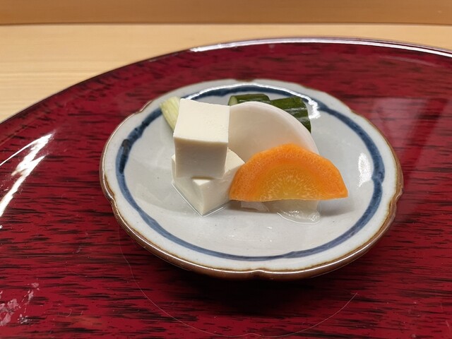 こちらのお店はコース料理のみで、コースは10000円、12000円、15000円の三つのコースから選べます。今回は12000円のコースでお願いをしました。併せて、お酒もおまかせでお願いしました。