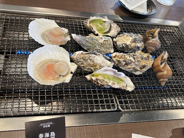 3人で名物牡蠣の星セット2 岩牡蠣生牡蠣各2を注文