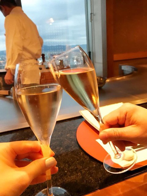 帝国ホテル大阪最上階の「鉄板焼嘉門」さんで、シャンパーニュとともに高麗橋ステーキコースを堪能させて頂きました。