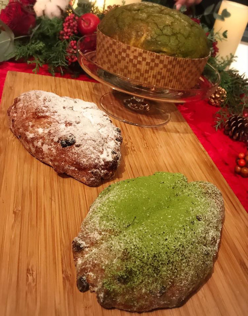 ハイアットリージェンシー大阪のベーカリー自家製のシュトーレン。こちらのシュトーレンはバターなしでオリーブオイルで仕上げられているので、しっかりした食感が特徴的。中にアクセントしてマジパンが練り込まれていましたよ。