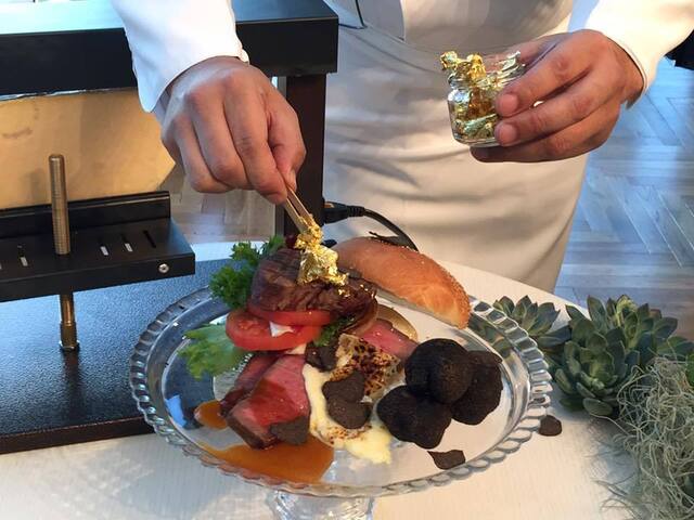ジュエルバーガーに金粉をトッピング