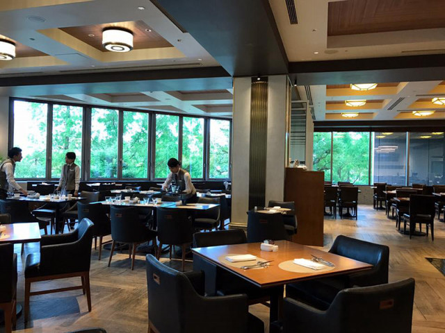 ブラウン、ホワイト、ブラックの3色を基調とされた古き良きオーセンティックな「コーヒーハウス」をコンセプトとされていて、大理石を使用されたブフェ台など高級感もあり、帝国ホテルならではの上質な雰囲気です。