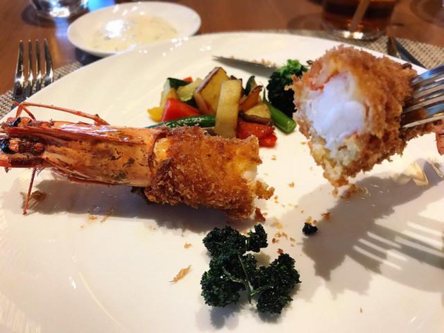 ・有頭海老のフライタルタルソースとレモン添え