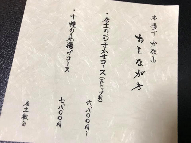 おしながきは店主のおまかせコース(ストップ制)6800円からと