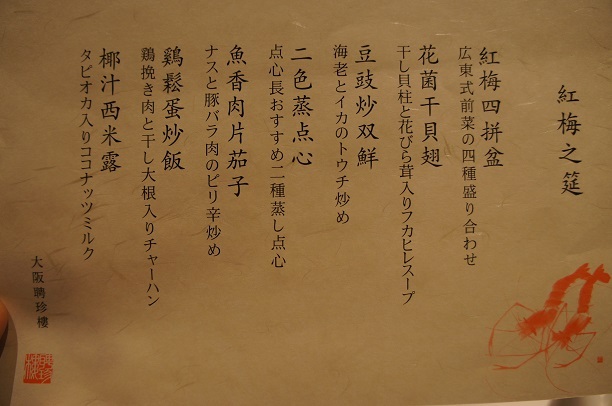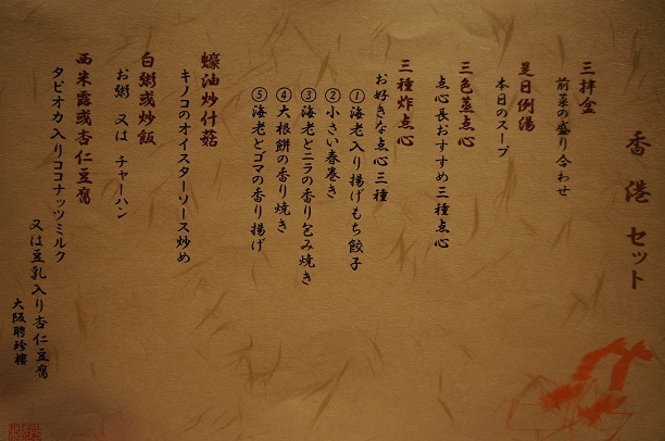 前菜の盛り合わせ・本日のスープ・点心長おすすめ三種点心・お好みの点心三種(下記①~⑤より三品)