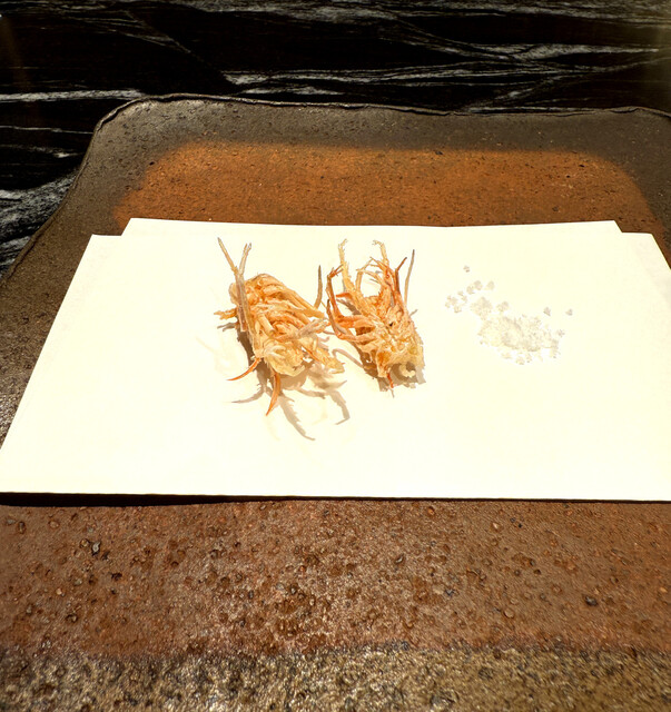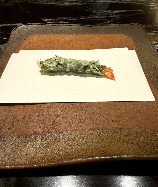 ・車海老。尻尾まで丁寧に処理されており、ひと口でその繊細さが伝わる仕上がり。