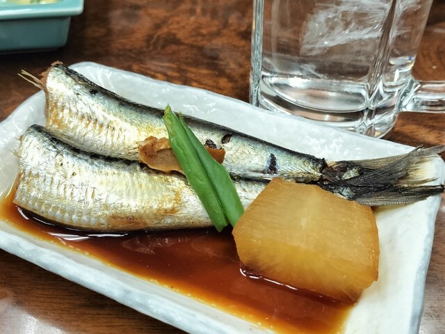 イワシは甘く煮つけられ、お酒に合う合う。