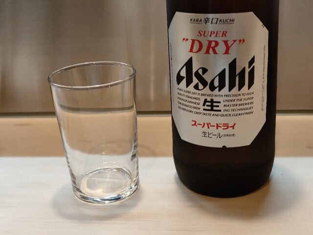 まずは瓶ビール。アサヒスーパードライ。