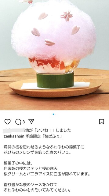 桜ぱふぇ(ドリンク、お茶請け付き)