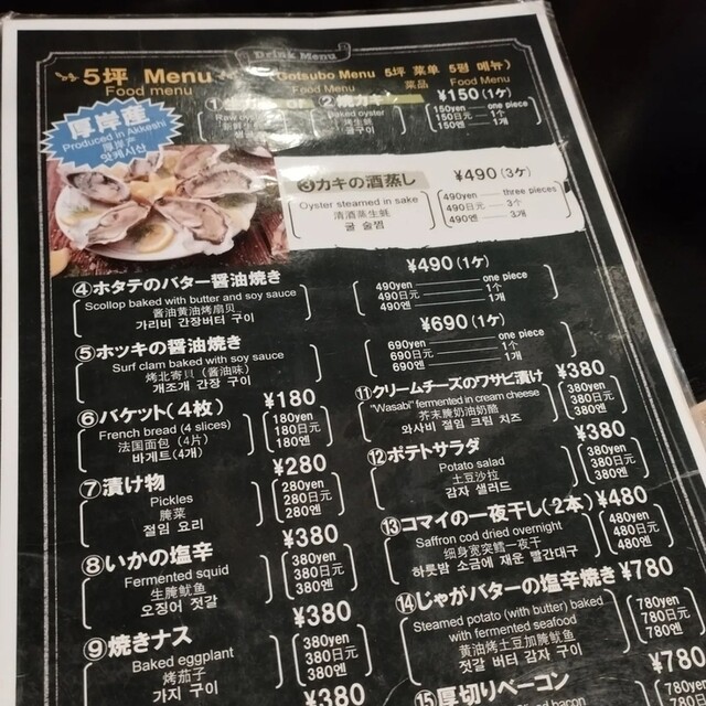 あと生牡蠣ついかしたっけか