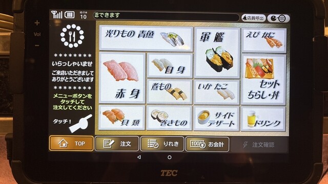 屋号にくるくる寿司と入ってるがお寿司はくるくる回ってない。