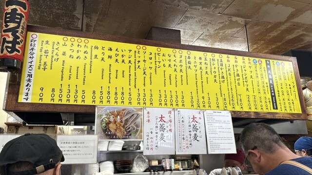 入店して正面で「太蕎麦の並」と「ジャンボゲソ天」と「紅生姜天」をオーダーする。