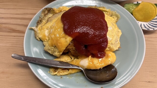ケチャップたっぷりで、ご飯はケチャップライスやけど笑。