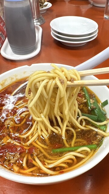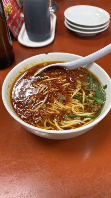 スープをレンゲで掬って飲むとめちゃ辛い。