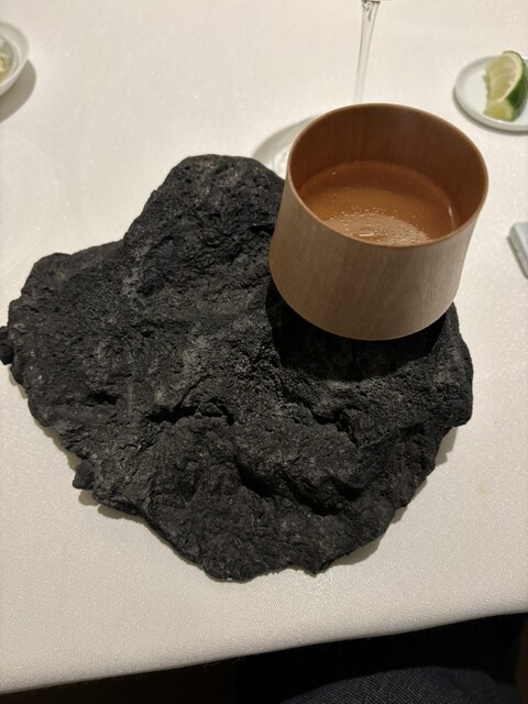 新しい場所に移転してから初めての訪問。以前から評判の良い店だが、その研ぎ澄まされ味とセンスはさらに進化している。それでいて、いやらしい気取りは一切感じない。店構えからして、空間を切り取ったような芸術性の高さで、素材にも味にも妥協のない凄みがある。全てに満足できる素晴らしさだ。それでいて、デザートの自家製きのこの山、雪見だいふく、パイの実などを模した一品など遊び心もある。どこまで進化していくのか空恐ろしさすら感じる。