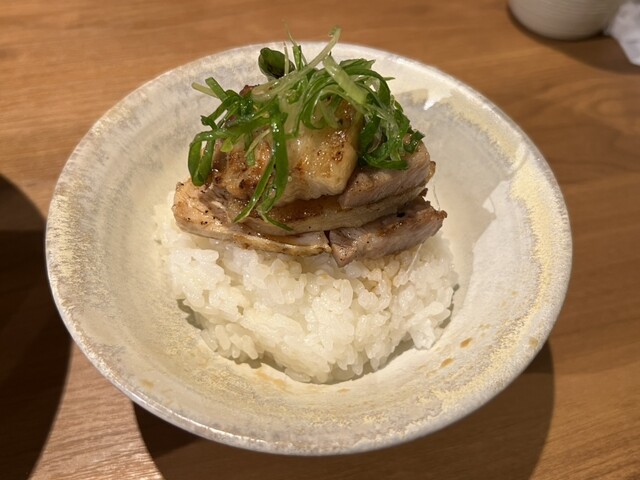 豚や鶏の数種類のお肉が乗っているんだが、これまた、それぞれのお肉が絶妙な焼き加減で全部の肉が美味い。店主が焼いてくれる高級焼肉屋のレベルかもと思うくらい。「え? これ? 牛肉ではないよね?」って錯覚するくらい。タレもちょうどよい甘辛さでご飯との相性抜群。普通にこの炭火お肉ごはんだけでも人気になるレベルの美味さ。ご飯もののサイドメニューも一切手抜きしてないのが伝わってきた。