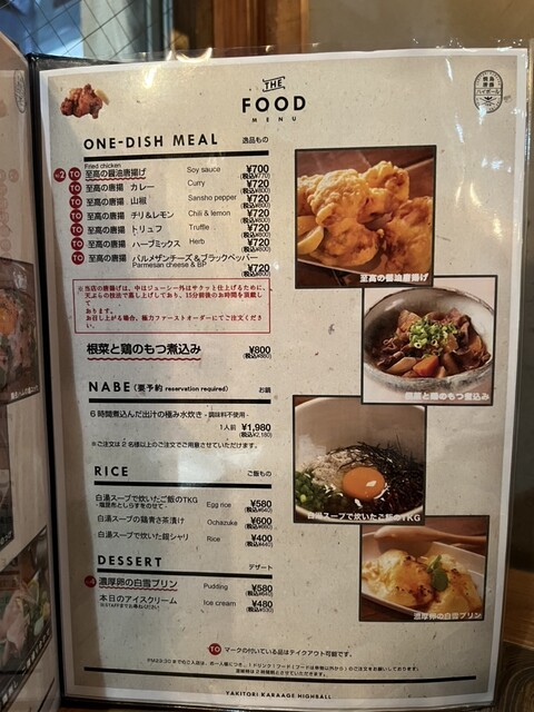 「せせり(串)」「ぼんじり(串)」「もも(串)」「つくね(黄身付)」「鶏皮ポン酢」「至高の醤油唐揚げ」
