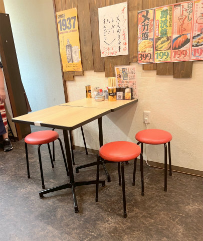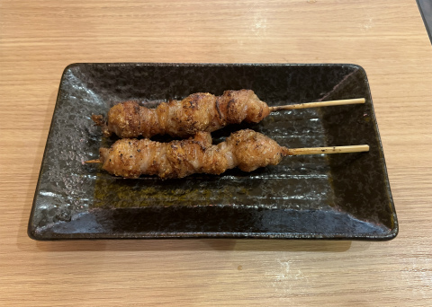 「大衆焼き鳥酒場 やきとりさんきゅう 高砂店」の入口の扉を開けてお店の中へ入ると先客は1名でした。1人で来たことをお店の方に告げると2人掛けのテーブル席に案内されました。席に座り飲み物ををいうことでウーロン茶を頼みましたがウーロン茶はメニューになかったので無糖紅茶を頼みました。メニューを見ると焼鳥は39円と書いていますね。もも、ねぎま、とりかわを2本ずつ注文。後は厚焼玉子、とり皮ポンズを注文しました。これらを食べた後にもう少しお腹に入りそうでしたので絶品親子丼を注文しました。