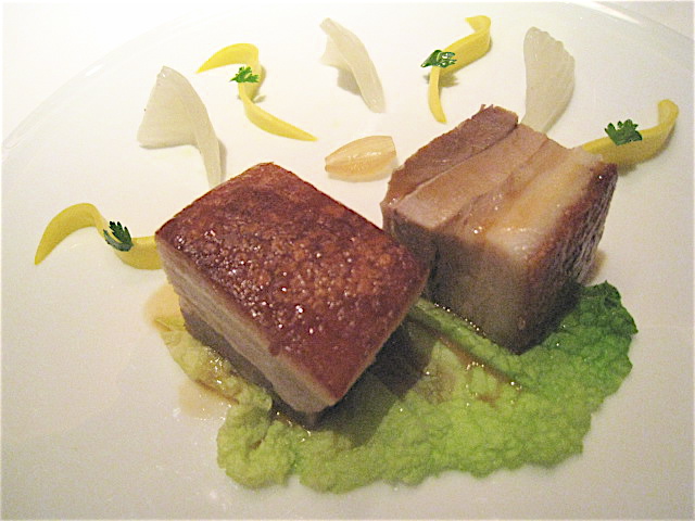 アグー豚のクルスティアン グリーンマンゴと白菜のアクセント