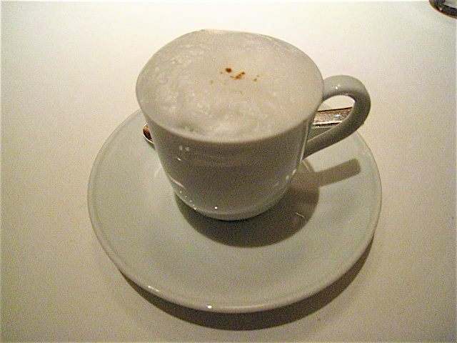 食後のドリンクはエスプレッソやカフェオレなども含めて色々選べるらしいが、カプチーノを所望。ホワホワのクレマ部分がかなりしっかりしていておいしい。