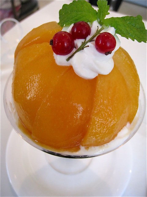 しかも前回はバニラアイスクリームが目立っていて桃のシャーベットはひっそりと顔を出していたのに、今回は逆バージョン(驚)。一切れの桃のサイズは前回の方が若干大きいような気も(汗)。