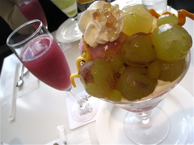 「スパークリングワイン」も選べるのだけれど、今回は車だったので「メロンジュース」を選択。さすがに「天下のTAKANO」のメロンジュースは濃厚でおいしいのだけれど、中に丸いメロンのアイスキューブが浮いていて、すっかり冷えてしまった(笑)。