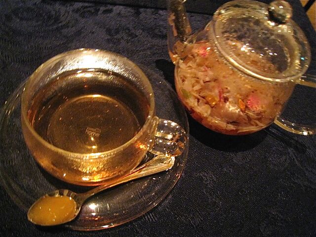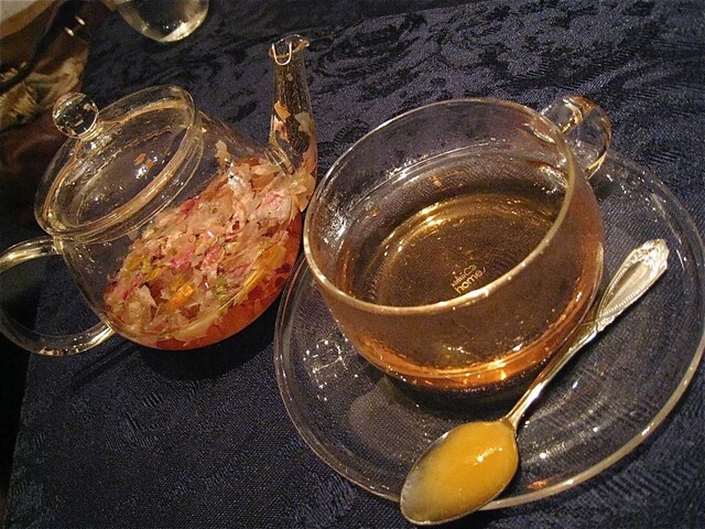 「マスカルポーネムース ソルベ ディ アルビコッカ」のデザートと小菓子や食後のチーズはおいしくいただいた。特にデザートワインでいただいた「Kabir/Donnafugata」、素晴らしすぎっ!ジビッボ(アレキサンドリア・マスカット)の香りが濃厚なまいうーなワインだった。そして〆は「サンタ・マリア・ノヴェッラ」のハーブティーでごちそうさま!!