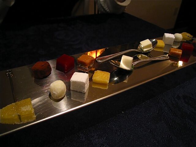 さらにチーズをいただき、貴腐ワインを2種類飲んだところで店内が暗くなる。