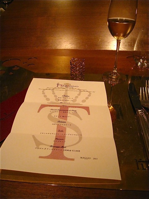 横浜の「サローネ」同様、お料理とハーブの組み合わせ方が特徴的なレストランだが、冒頭のパンに象徴されるシチリアのオリーブオイルと塩というように、シチリア料理というテーマが根底に流れている分、「サローネ」よりも此方の方が「力強いイタリア南部の料理」という印象が強いような印象を受けた。とは言いつつ、内装や店内のゴージャス感は此方に軍配があがるかな。南青山というロケーションのせいもあるのだろうけれど(笑)。