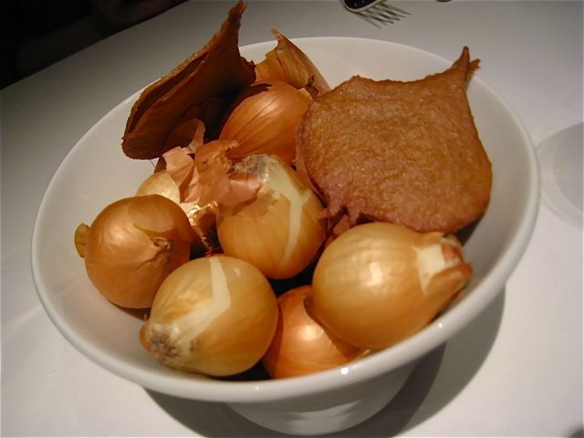 お付きだしは「玉ネギのクレープ」。ミニ玉ネギのお皿に盛られて登場した(笑)。
