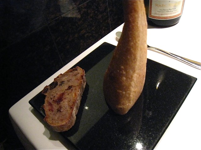 此方のスペシャリテでもある「□いグリーンオリーブ」は、乾燥させたオリーブをフレンチトーストに練り込んで仕上げたものなのだそうだ。今回も専用のお皿(四角い窪みのある)にどっかりと収まっていた。もちろんお味は完璧!!