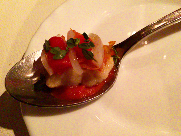 たしかに此方のお料理のポーションは全体的に少なめ。特に最初の二皿は見るからに一口サイズだが、さすがにサローネグループ!!しみじみとおいしくて、その完成度の高さに驚かされる。
