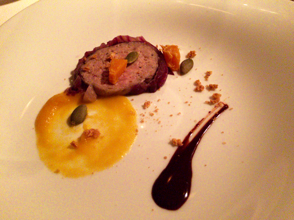 鴨のメダリオーネ カボチャのソースとチョコシナモンソース
