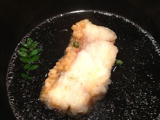 この「夏の余韻」に浸りながらいただくのは「くろむつ」。爽やか風味の自家製大根おろしポン酢でいただく「くろむつ」は身がしまっていて絶妙の焼き加減。お魚のおいしさもさることながら、この自家製ポン酢と「HANABI」の相性がバッチリ!!いつまでも食べていたい感じの大根おろしだった。