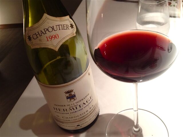 合わせていただくワインは「M.Chapoutier Hermitage Monier de la Sizeranne 1990」。時をかけて熟成したシラーの奥深さが鴨の野趣感と見事に調和したマリアージュだった。。。