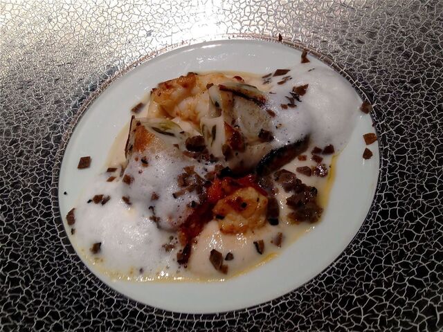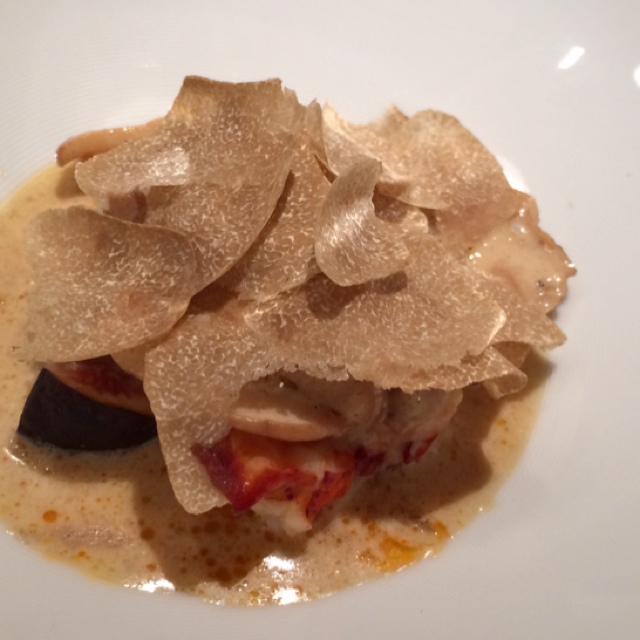 【13年12月】スモークしたオマール海老と赤穂牡蠣のポアレ、白子のソースとトリュフの香り